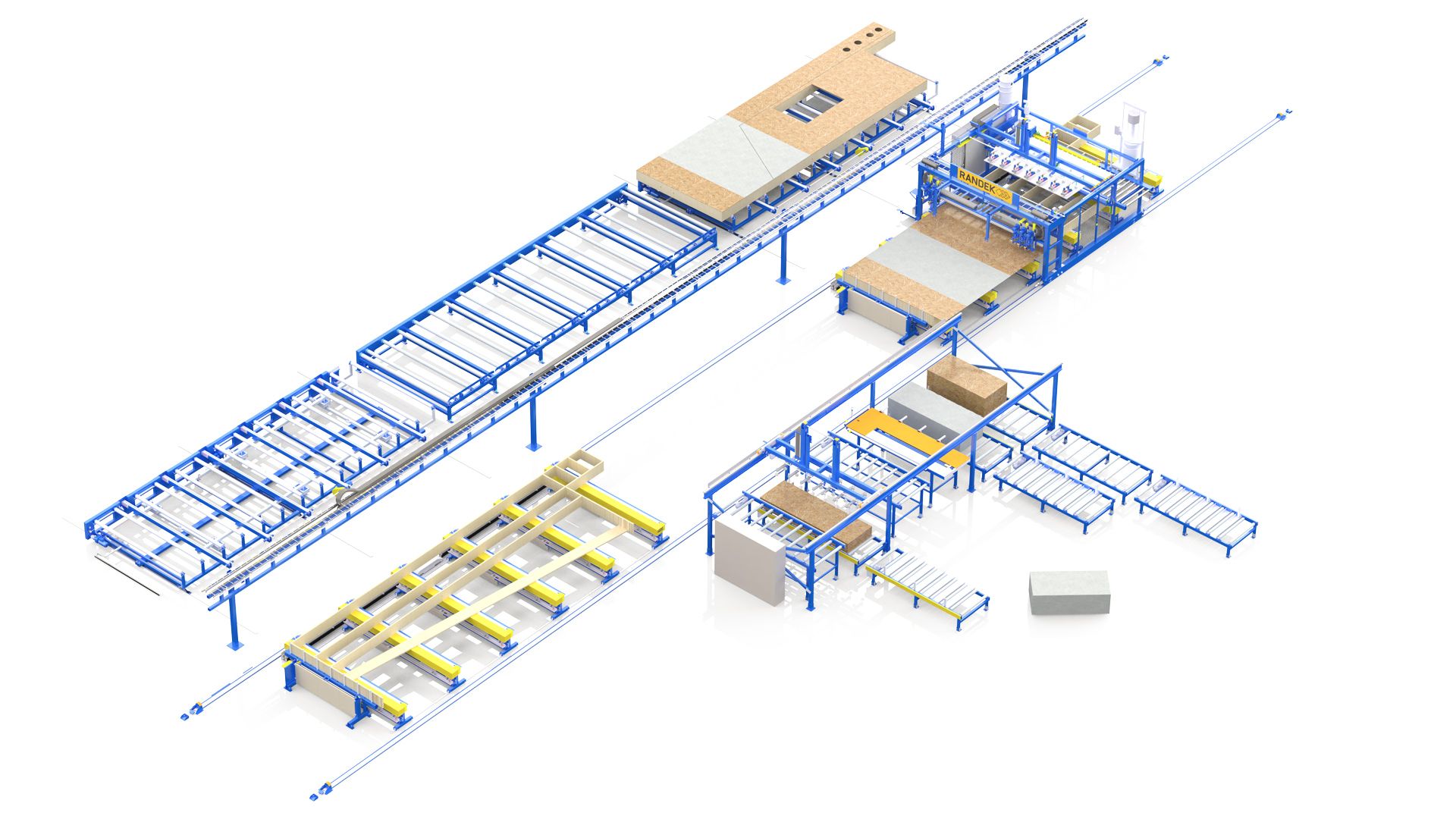 Designed for the production of finished exterior wall panels for house manufacturers. It consists of three main components: one portal and two work tables.